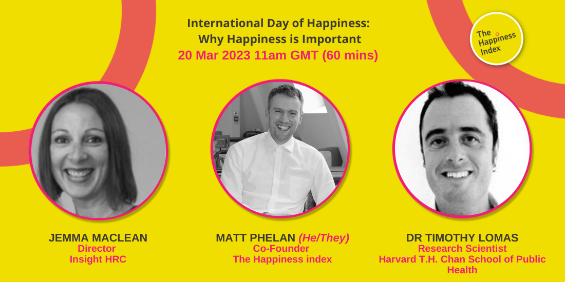 Kashi Chellen sits down with Matt Phelan (Co-Founder, The Happiness Index), Jemma MacLean (Director, Insight HRC) and Dr Timothy Lomas (Research Scientist, Harvard T.H. Chan School of Public Health) to discuss: