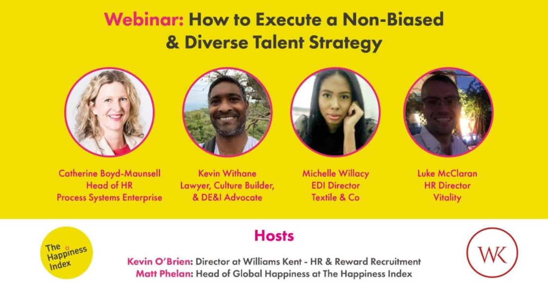 Join The Happiness Index and Williams Kent for a virtual roundtable exploring how to execute a non-biased, diversity and inclusion talent strategy.